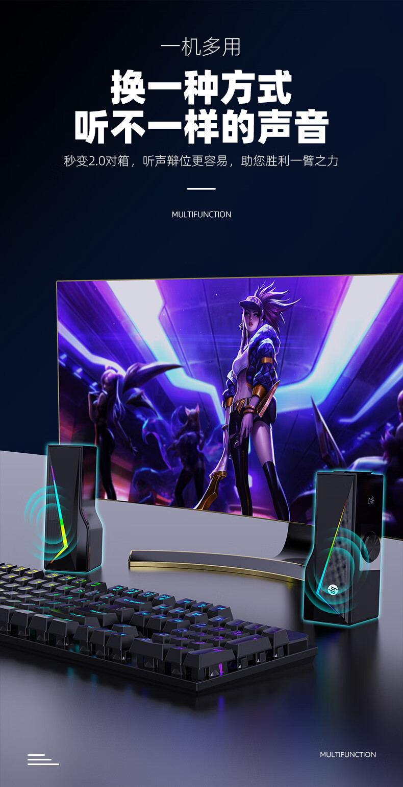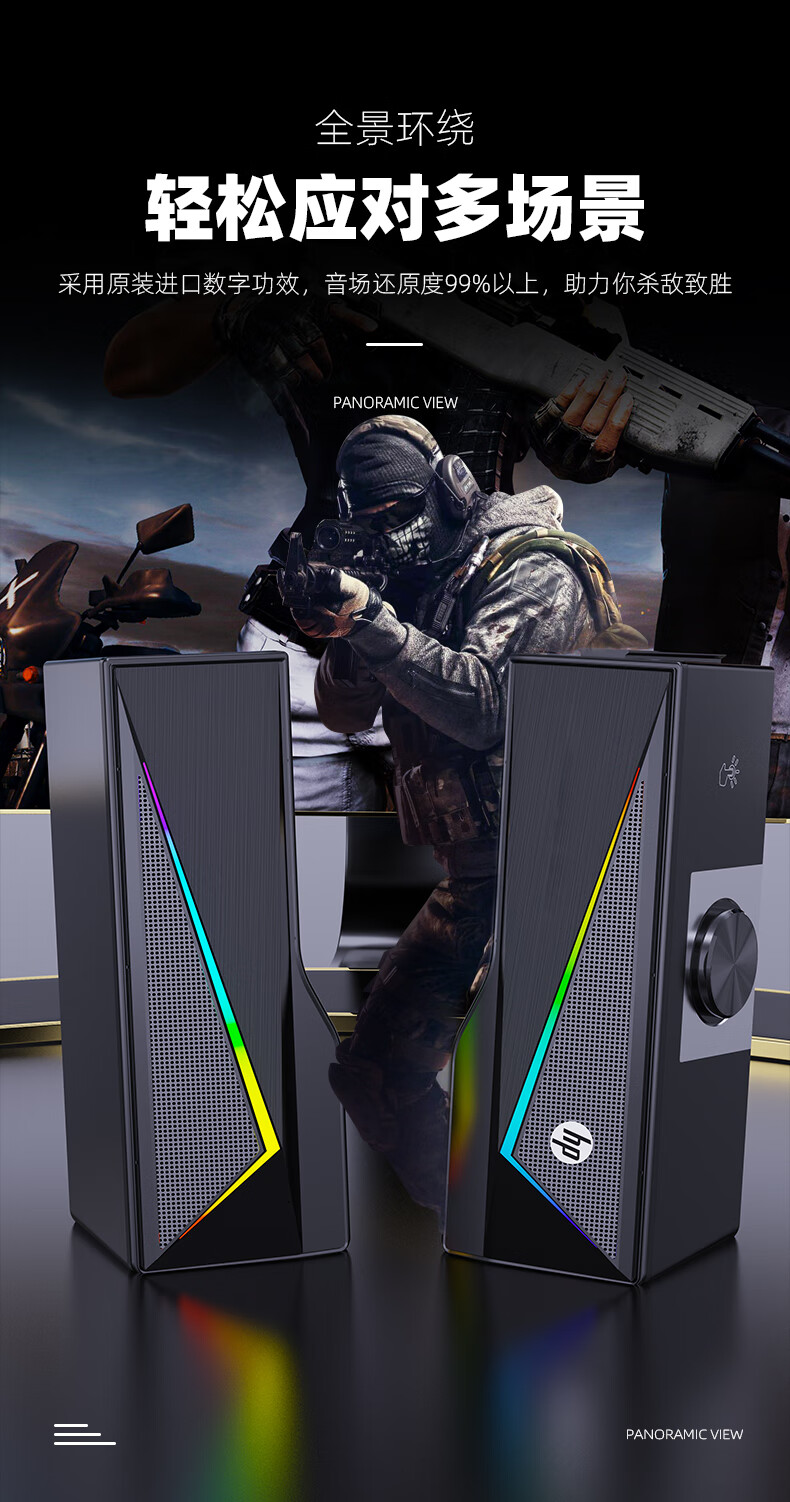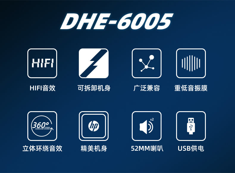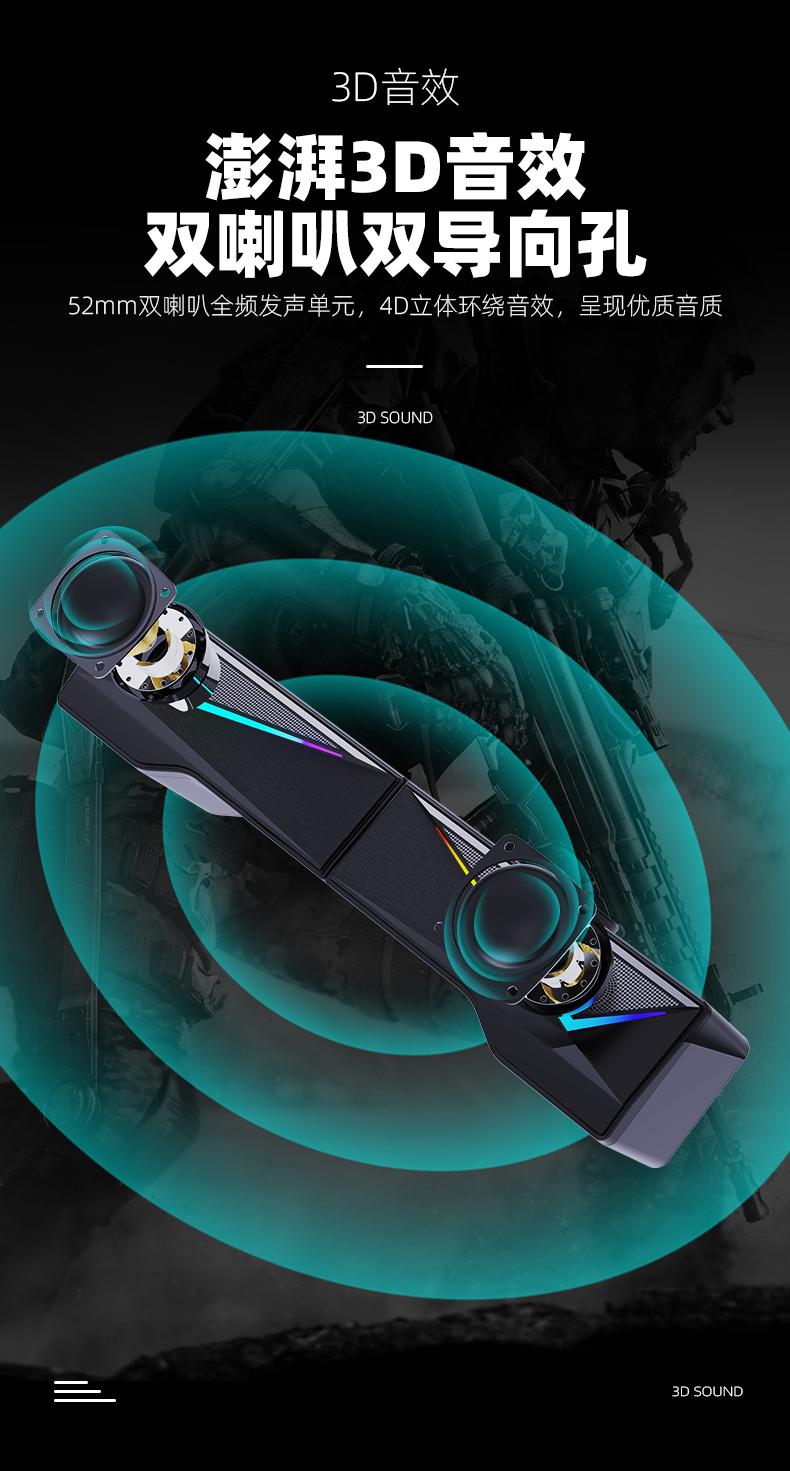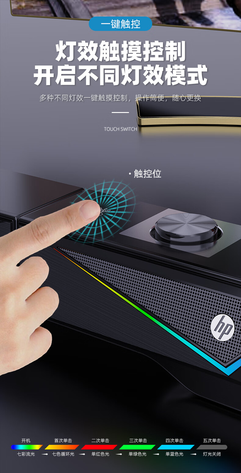 HP computer speaker, home desktop computer, laptop, subwoofer, long bar mini steel cannon, high volume USB multimedia cable DHE-6005