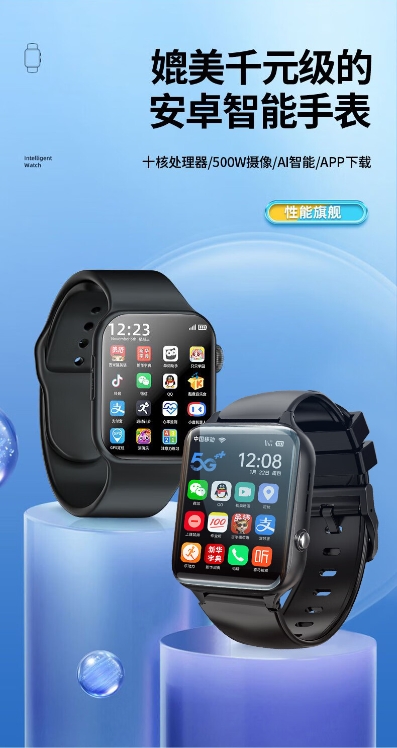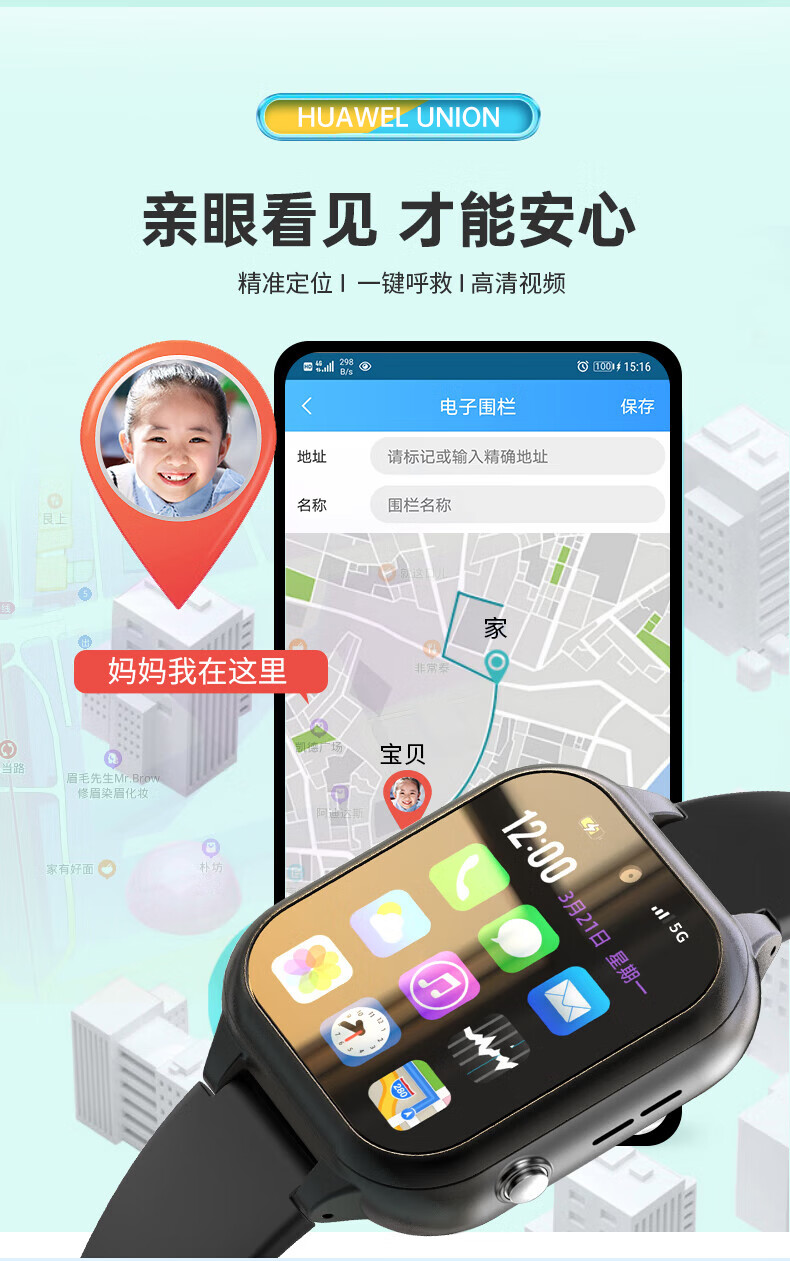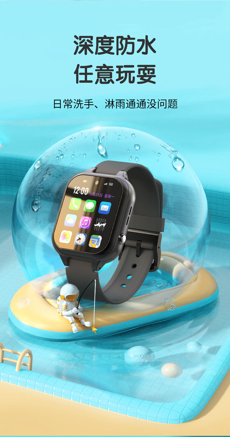 HUAWELSTAR UNION [Security Monitoring] Smart Children's Phone Watch with Card Insertion WeChat Bluetooth Learning Table Ink Treasure Black [WeChat Payment Positioning Learning APP]