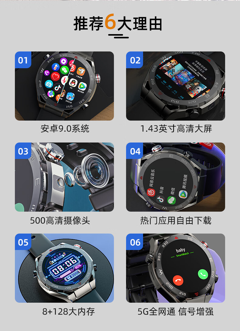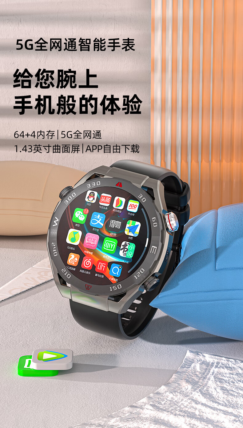 The new top of the line GT4Pro smartwatch can be inserted and connected to WATCH4pro phone, watch, WeChat download, top of line card insertion high-definition camera+Gold Classic Black 128G