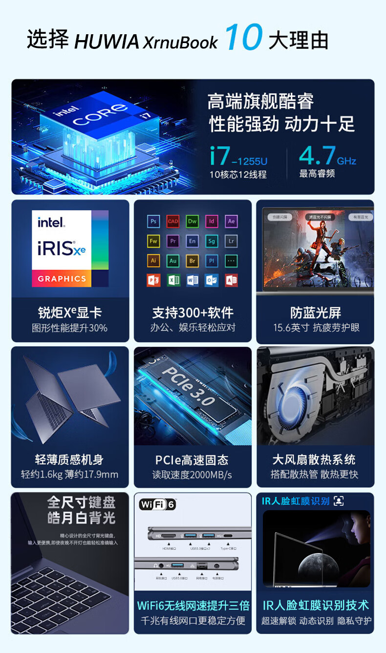 HUWIA XrnuBook [New 2024+Facial Recognition] Laptop 12G I7 Top of the line High Performance Ruiju Graphics Card 32G Running 1024G Solid State Drive